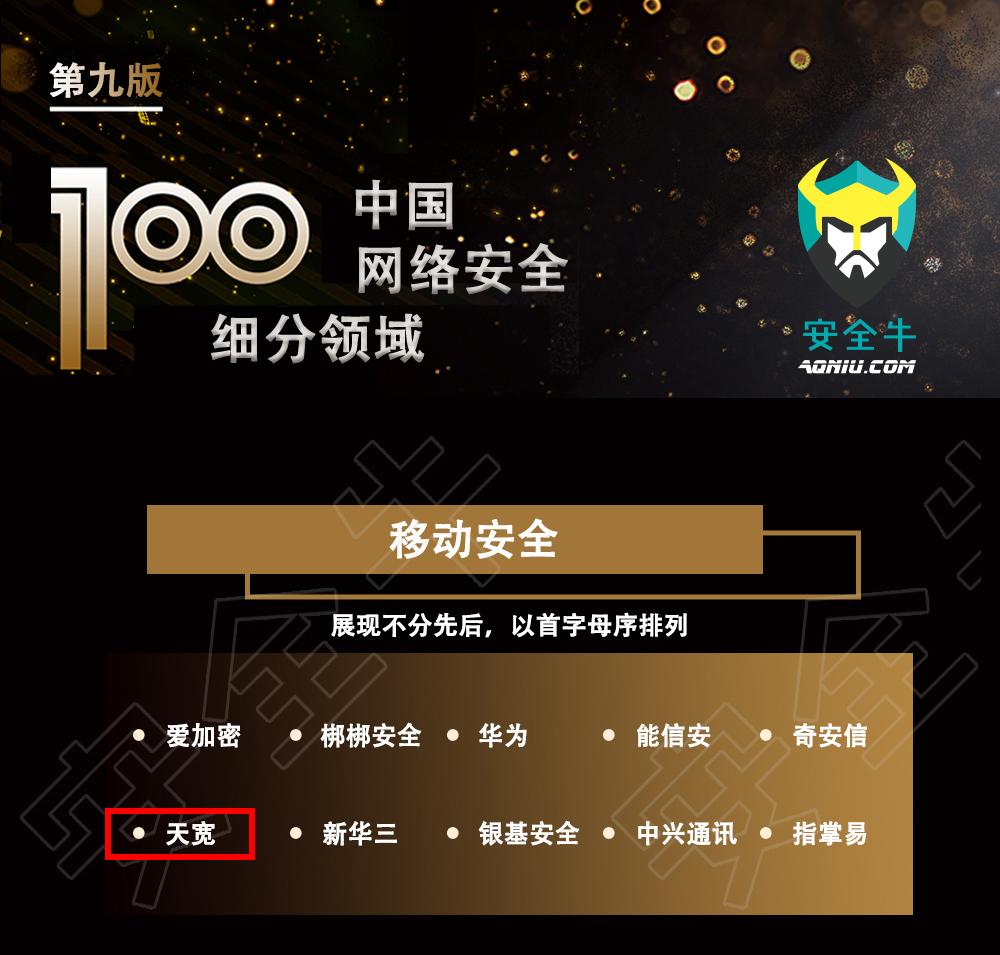 11月9日,國(guó)內(nèi)權(quán)威安全媒體“安全牛”第九版《中國(guó)網(wǎng)絡(luò)安全企業(yè)100強(qiáng)》榜單正式發(fā)布。天寬憑借...