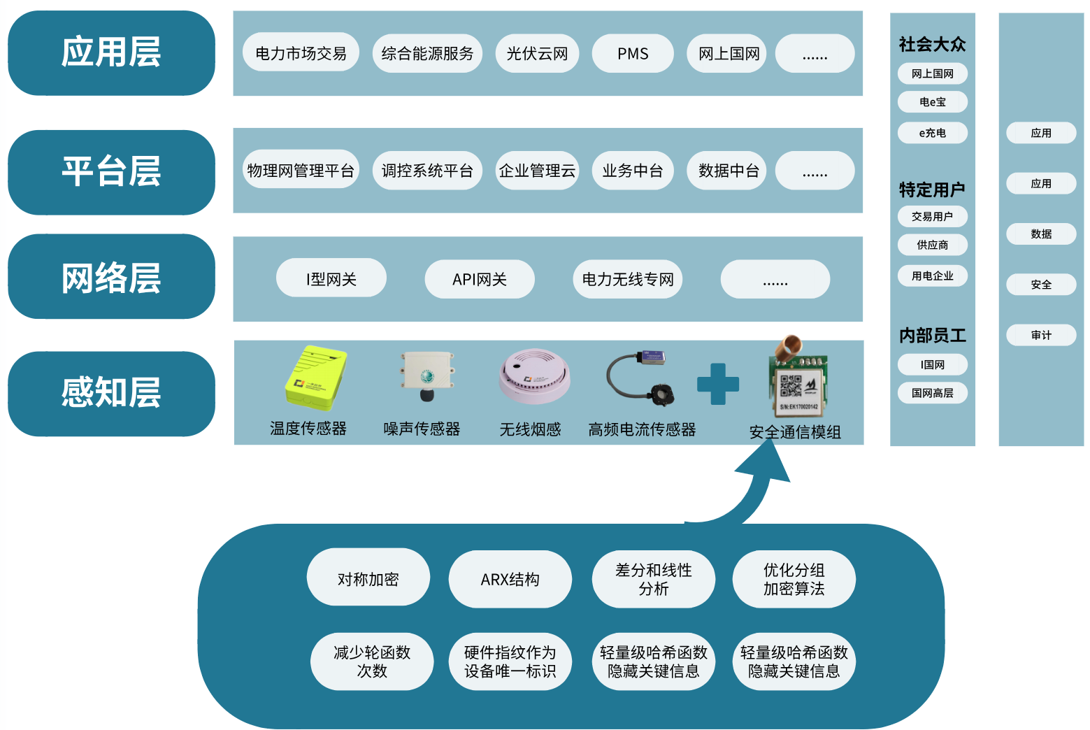 無線傳感網(wǎng)絡(luò)輕量級安全解決方案針對輸變電設(shè)備物聯(lián)網(wǎng)等電力物聯(lián)網(wǎng)感知層網(wǎng)絡(luò)特征及安全需求,提出適用于電力無線傳感網(wǎng)絡(luò)的新型輕量級分組加密算法和輕量級身份認證方案,解決計算/存儲/帶寬資源及功耗受限的電力無線傳感網(wǎng)絡(luò)安全防護難題,保證終端和通信的安全性,提高無線傳感網(wǎng)絡(luò)的安全防護能力。